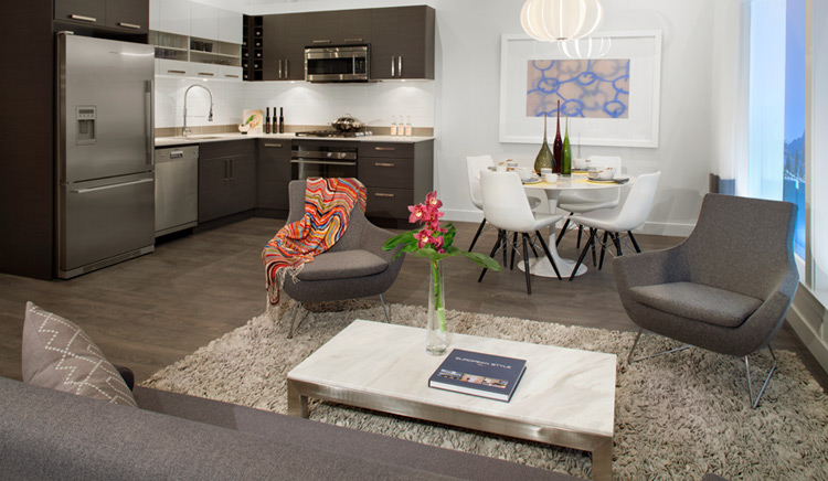 Situated in the heart of Kitsilano, surrounded by the restaurants and shops of West 4th Avenue and just blocks from the beach, these modern studios, 1 and 2 bedroom suites appeal to trendy urbanites. Open floor plans suit entertaining. Generous-sized patios and balconies extend the living space outdoors. Higher north-facing suites have amazing views.